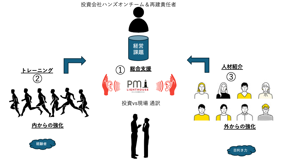 (株)PM-ライトハウス (PM-Lighthouse, Inc.)は、資本と現場の”あいだ”で、企業再生を実行します。