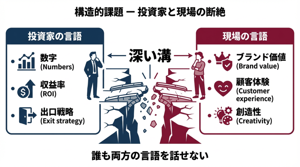 投資会社と経営者(ファッション業界)との間に、深いずれがある。